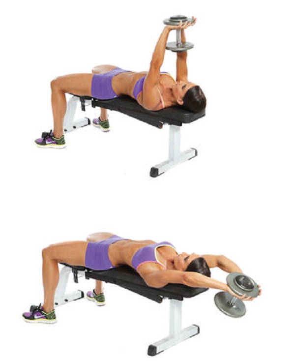 6. Bài tập nằm kéo tạ ra sau đầu cho nữ - Dumbbell Pullover