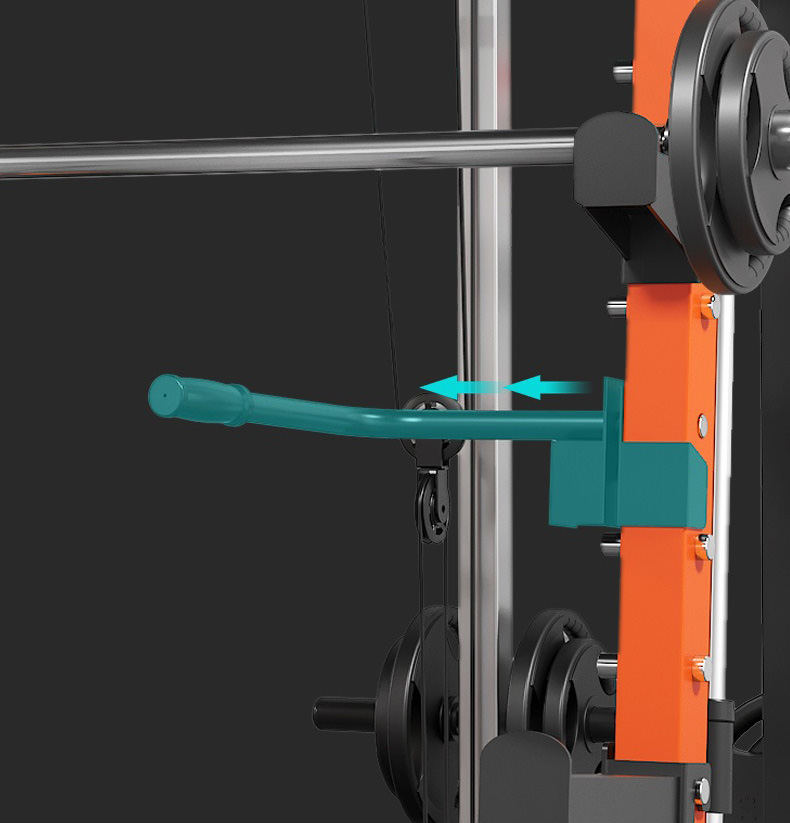 - Chức năng Squat đã được tích hợp đòn tạ đi kèm, thực hiện trong phạm vi khung đỡ đảm bảo chuẩn kỹ thuật. Hai bên khung có hệ thống móc chốt đòn tạ gắn vào các điểm trên khung chính nên bạn hoàn toàn yên tâm về độ an toàn khi sử dụng, không lo xảy ra sự cố.