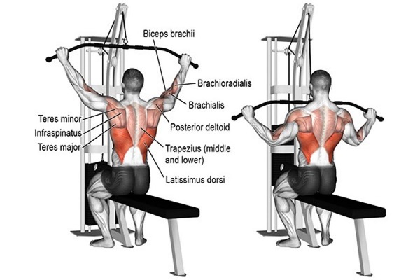 - Bạn hãy sử dụng lực của các phần cơ kể trên nhằm kéo cần xô xuống cho đến khi gần chạm vào với ngực. Giữ trong khoảng từ 1 đến 2 giây nhằm tăng hiệu quả khi tập luyện.