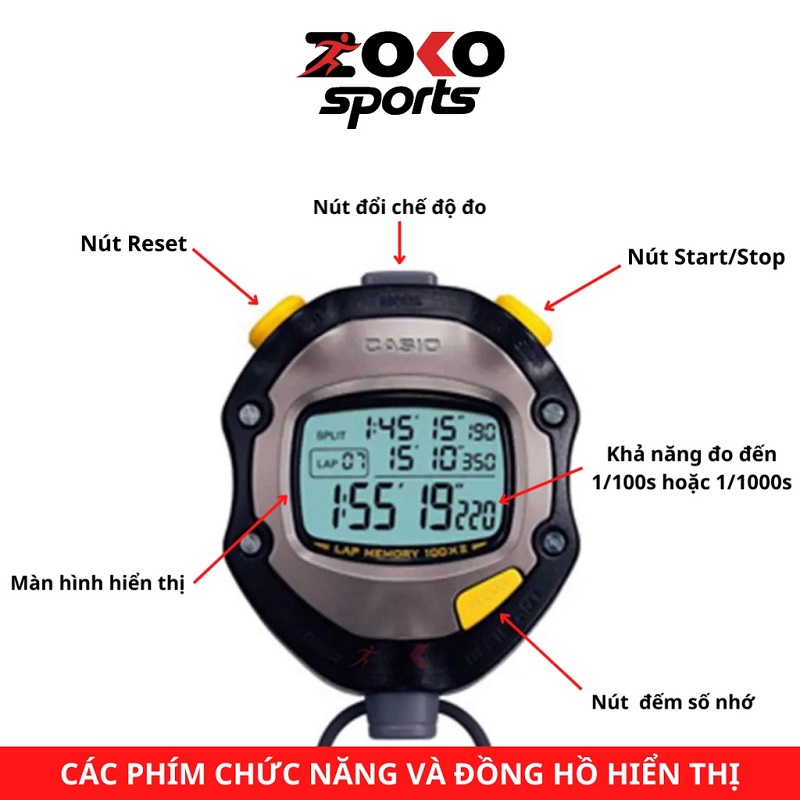 Thông số kỹ thuật các phím của đồng hồ bấm giờ casio hs 70w