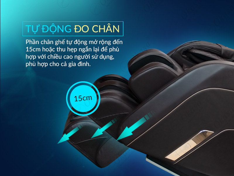 Các bài massage có trong ghế massage OKASA PRO S1 chuyên sâu và có thể đu đưa nhẹ nhàng như đưa bạn vào giấc ngủ thật sâu và nhanh hơn. Ghế còn tự động đo chân mở rộng đến 15cm hoặc là rút ngắn lại nhằm phù hợp hơn với chiều cao người sử dụng và phù hợp hơn với cả gia đình.