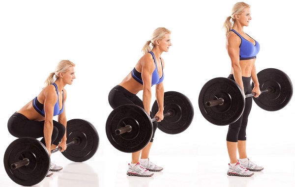 - Hãy căng cứng thân người và nâng thanh tạ lên bằng cách căng cứng cơ mông đẩy hông về phía trước cũng như kéo thân người lên.