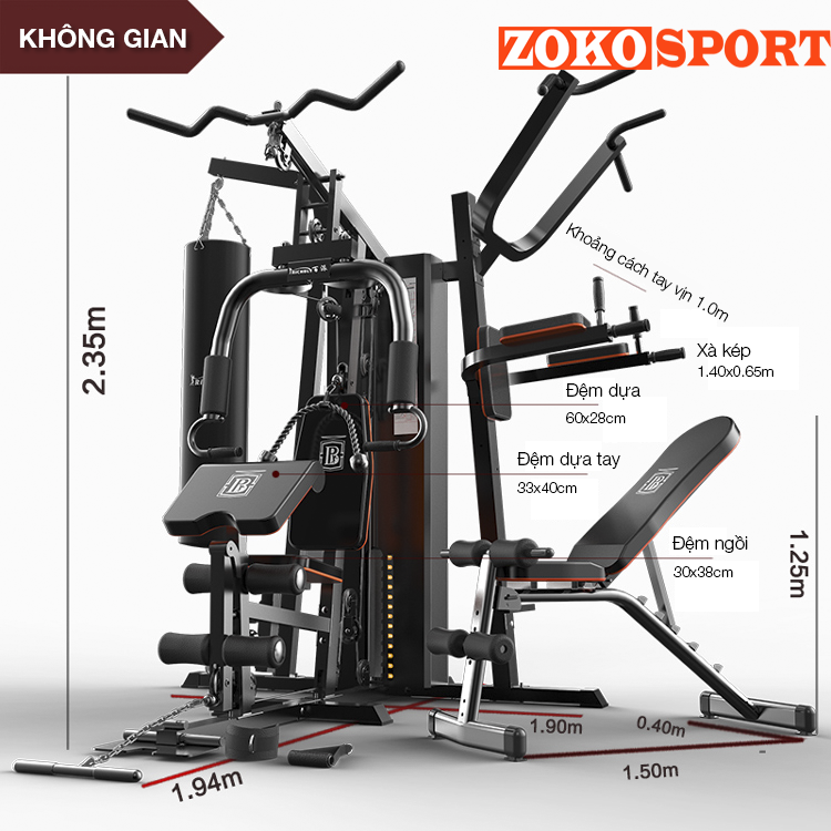 ⚡ Diện tích đặt giàn tập: 1940 x 1900 x 2350 mm;