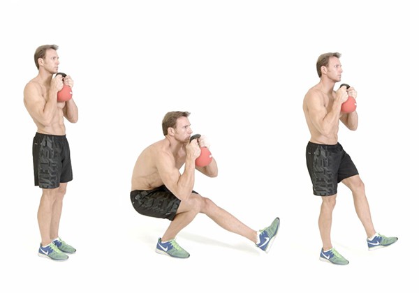 - Tư thế nhấc tạ ấm bằng với hai tay hãy giữ ở quai và nhấc một chân ra khỏi mặt đất và ngồi xổm ở trên chân kia.