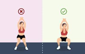 Đây được xem là lỗi thường mắc nhất của nhiều người trong quá trình tập luyện các bài tập này. Những tư thế sai như gù lưng và cúi đầu, chân thường dang rộng hơn và đầu gối thì chụm lại.