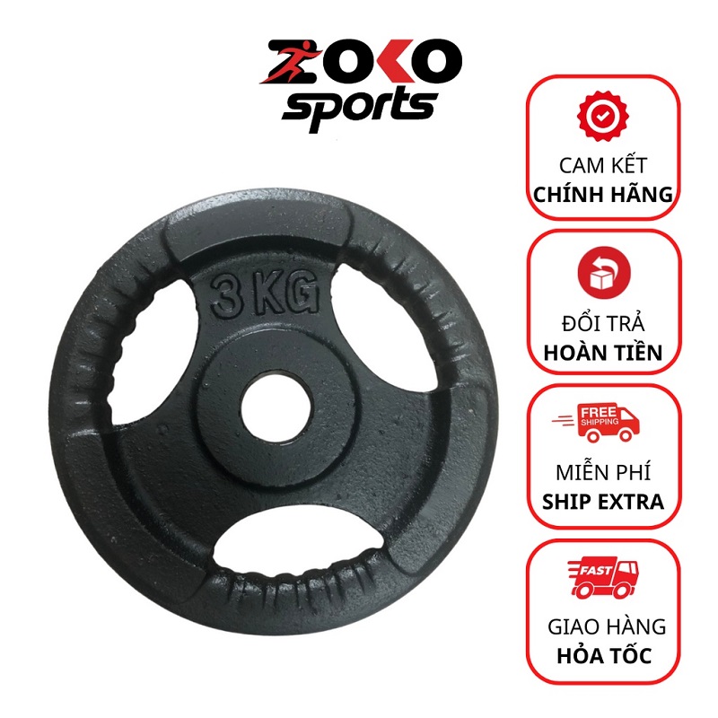 Tạ gang 3 kg, bánh tạ gang lỗ phi 30, đĩa tạ gang tập tay loại 1 - ZOKO SPORT