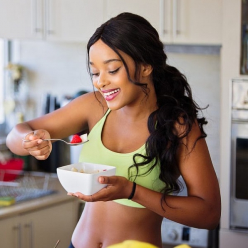 Mua một cốc sữa chua cùng với trái cây tươi cũng là ý kiến hay nhằm cung cấp 200 gram protein. Hoặc bạn cũng có thể bổ sung các chất dinh dưỡng bằng cách tăng thêm nhiều lượng trái cây thêm carbs nhằm thúc đẩy năng lượng. Hãy sử dụng những loại quả giàu chất chống oxy hóa như quả Việt quất. Nhiều nghiên cứu đã chỉ ra rằng nếu ăn món này sau khi tập luyện cũng có thể giúp giảm viêm cơ do thể dục.