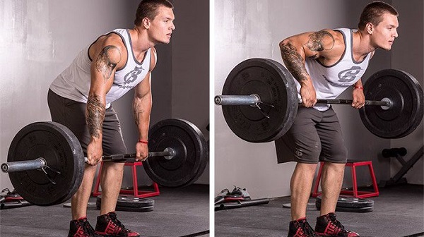 - Tiếp đến bạn kéo thanh tạ lên chú ý khi nâng bạn cần giữ lưng thẳng nhất có thể và hơi nghiêng người về phía trước nhằm giảm chấn thương cho lưng.