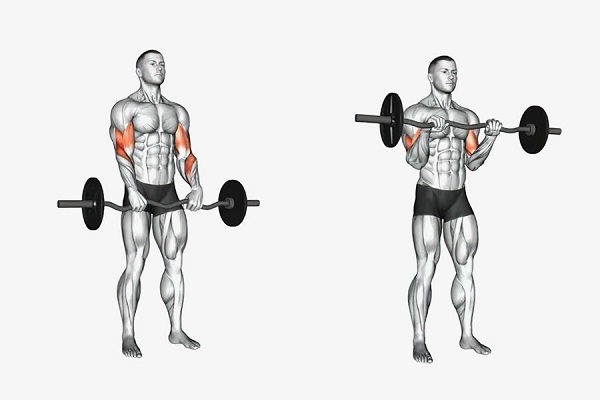 - Bạn dùng hai tay nắm chặt thanh tạ và ấn tạ về phía của cơ thể lòng bàn tay của bạn hướng vào bên trong.